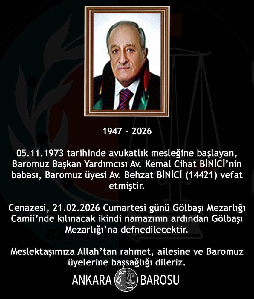 BAROMUZ ÜYESİ AV. BEHZAT BİNİCİ (14421) VEFAT ETMİŞTİR.
