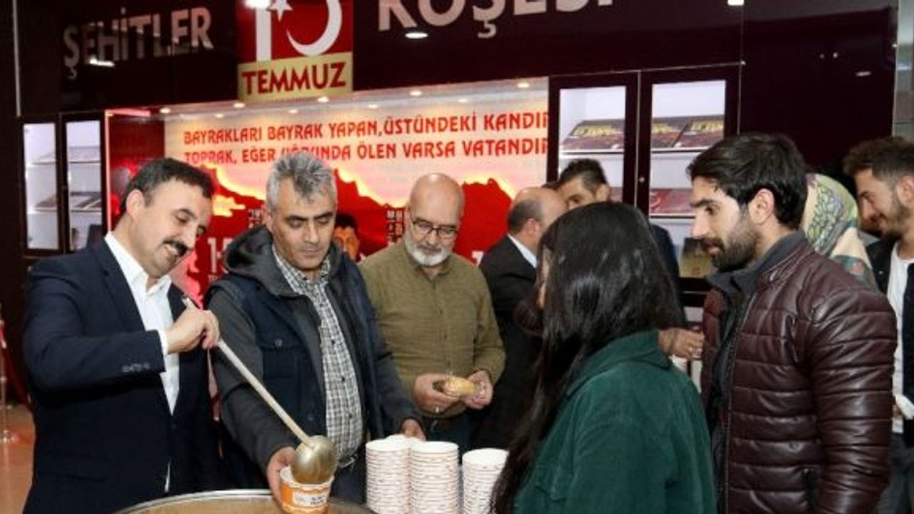 AİÇÜ Kütüphanesinde vize sınavlarına hazırlanan öğrencilere çorba ikram ediliyor.