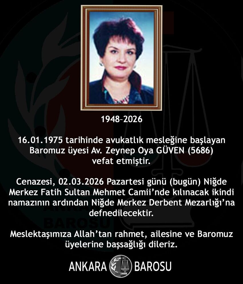 BAROMUZ ÜYESİ AV. ZEYNEP OYA GÜVEN (5686) VEFAT ETMİŞTİR