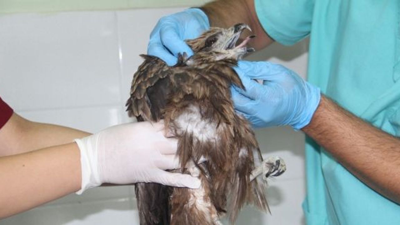 Elazığ’da bitkin halde bulunan şahin tedavi altına alındı.