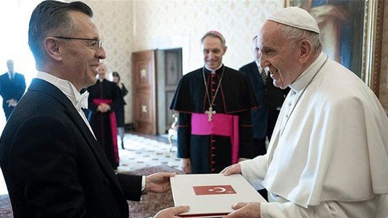 Vatikan Büyükelçisi Lütfullah Göktaş, Katolik Kilisesinin ruhani lideri ve Vatikan Devlet Başkanı Papa Franciscus tarafından Vatikan’daki Papalık Sarayı’nda kabul edildi. Papa Franciscus’un güven mektubunu teslim aldığı ikili görüşmede, Suriye’deki insanlık dramının, Kudüs ile ilgili gelişmelerin ve Türkiye-Vatikan ilişkilerinin yanı sıra Müslümanlar ile Hristiyanlar arasındaki ilişkiler de ele alındı. Din ile terör kavramlarının ilişkilendirilemeyeceği belirtilerek ortak mücadelenin önemi vurgulandı. Görüşmenin ardından Göktaş, Vatikan Devlet Sekreteri Kardinal Pietro Parolin ile de bir araya geldi.