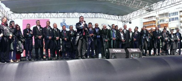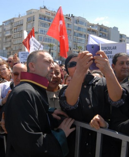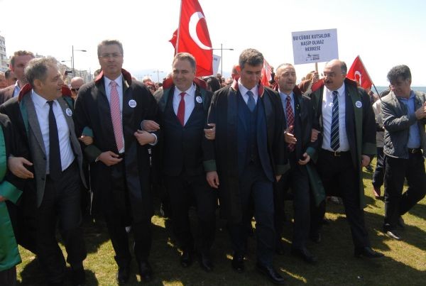 Gündoğdu Meydanı'ndaki mitingi ise, İzmir Avukatlar Orkestrası Grup Değişik İş Konseriyle başladı. Alanı dolduranların da şarkılarına eşlik ettiği grup, sahneden şehit Cumhuriyet Savcısı Mehmet Selim Kiraz'ı da andı. Bu arada Bursa'daki mitinge katılan YARSAV ve Yargıçlar sendikası üyeleri, bu mitinge katılmadı.