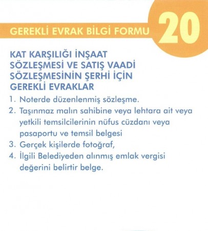 KAT KARŞILIĞI İNŞAAT SÖZLEŞMESİ VE SATIŞ VAADİ SÖZLEŞMESİNİN ŞERHİ İÇİN GEREKLİ EVRAKLAR