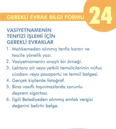 VASİYETNAMENİN TENFİZİ İŞLEMİ İÇİN GEREKLİ EVRAKLAR