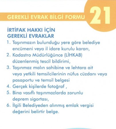 İRTİFAK HAKKI İÇİN GEREKLİ EVRAKLAR