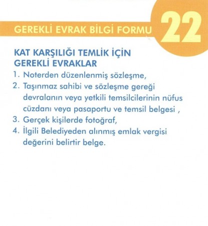 KAT KARŞILIĞI TEMLİK İÇİN GEREKLİ EVRAKLAR