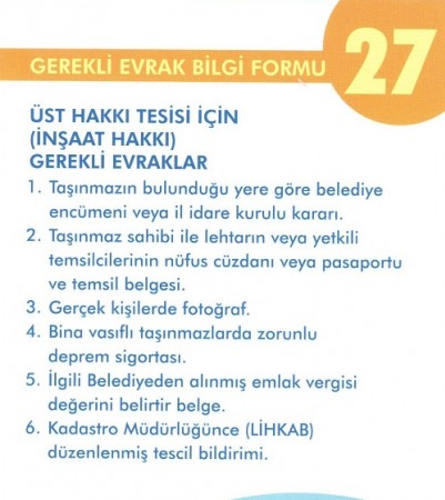 ÜST HAKKI TESİSİ (İNŞAAT HAKKI) İÇİN GEREKLİ EVRAKLAR