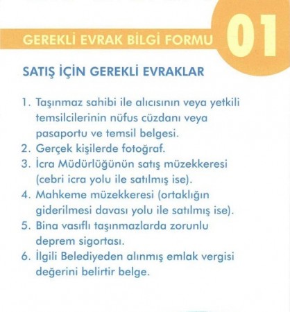 SATIŞ İÇİN GEREKLİ EVRAKLAR
