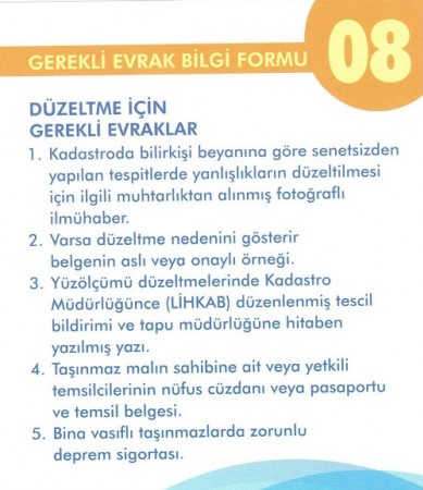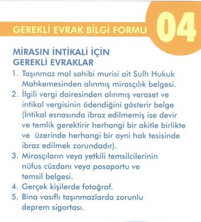 Tapu işlemleri için gerekli evraklar (Herbir işlem için ayrı bilgi formu)