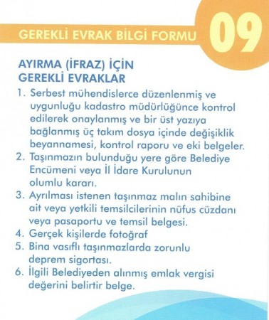 AYIRMA (İFRAZ) İÇİN GEREKLİ EVRAKLAR