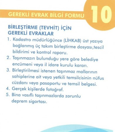 BİRLEŞTİRME (TEVHİT) İÇİN GEREKLİ EVRAKLAR