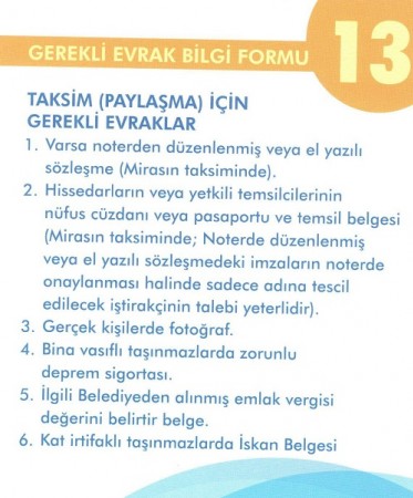 TAKSİM (PAYLAŞMA) İÇİN GEREKLİ EVRAKLAR