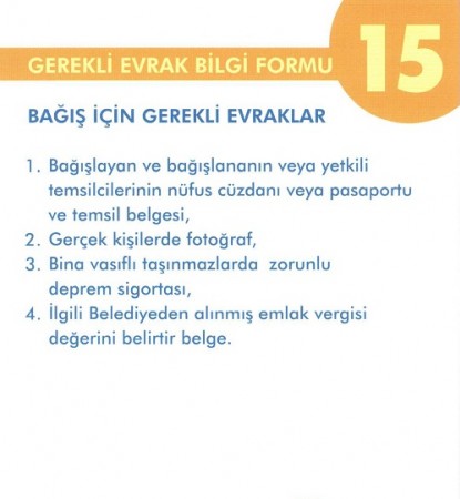 BAĞIŞ İÇİN GEREKLİ EVRAKLAR