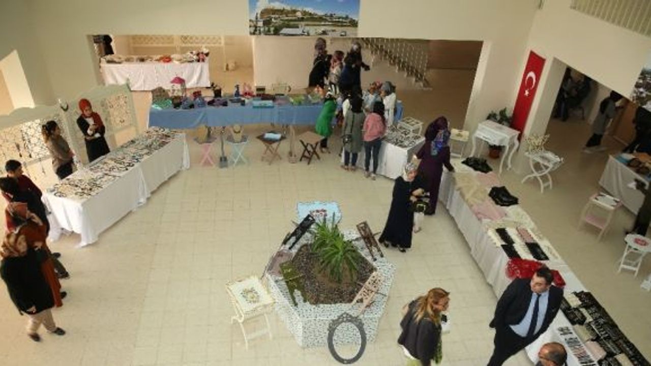 Sosyal Destek Programı (SODES) tarafından desteklenen ‘Hünerli Eller Geleceğini Şekillendiriyor’ projesinin kursiyerleri tarafından yapımı tamamlanan eserler, Aydıntepe MYO fuaye alanında sergilendi.