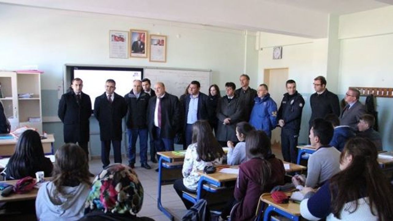 Lise ziyaretinden sonra Gazi İlkokulu’na geçen heyet, ana sınıfı öğrencilerine kırtasiye malzemeleri hediye ederek okuldan ayrıldılar.(YD-EFE)