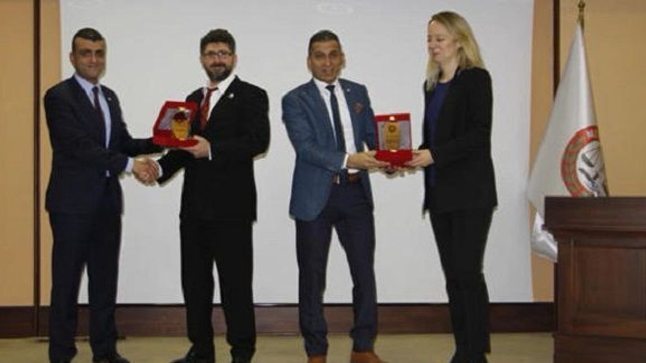 Konferansın sonunda Baro Başkanı Av. Ali Er ve Başkan Yrd. Av. Gazi Özdemir, ISTAC adına Mersin’de sunum yapan Rıfat Bacanlı ve Candan Yasan Tepetaş’a plaket takdim etti.