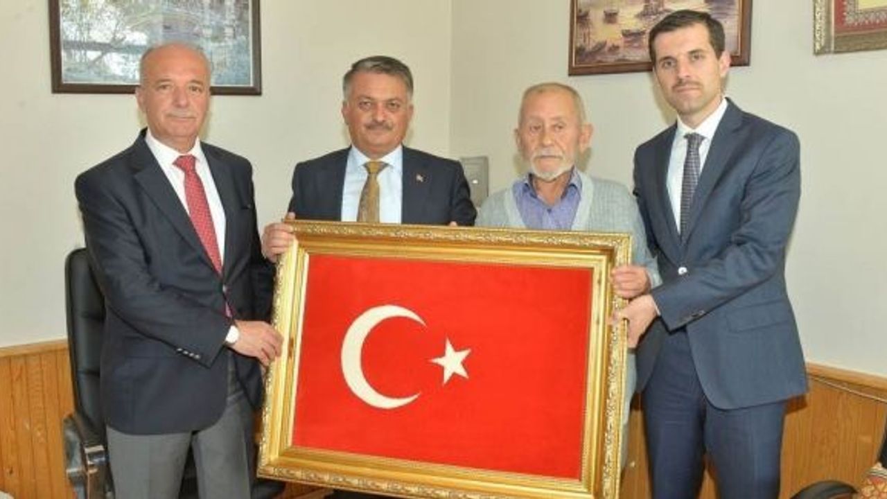 Vali Ersin Yazıcı, şehitlerimizin ailelerine zeytin fidanı ile Türk Bayrağı işlenmiş motifli halıyı hediye etti.