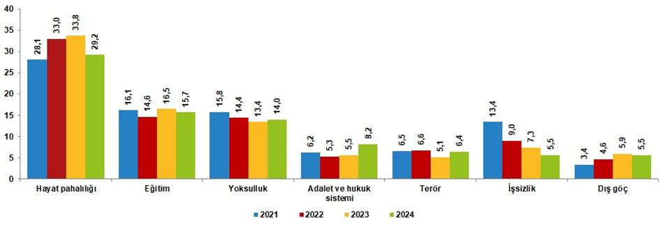 Ülkenin en önemli sorunu (%), 2021-2024